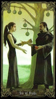 написанному мной выше, возможно какое то давление на тебя, желание внушить поменять планы, сделать в этом отношении не так, как тебе бы хотелось, а как желалось бы лицу находящемуся рядом и вот именно поэтому, вероятно карты и показали 5 Мечей, что тебе все таки придется в чем то отстаивать свою точку зрения. Две следующие двойки дружно заострили на этом внимание: не предпринимай чего то, в противоречие себе исходя из какой то личной привязанности или хорошего отношения. Поясню: хочу поехать на море, а он хочет в пустыню - поеду в пустыню, пусть ему будет хорошо, я ведь так его обожаю. Пусть это не то, что я хочу, зато ему будет хорошо! Я об этом.