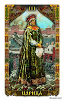 слева три карты - возможные угрозы и внешняя негативная работа на кверента Умеренность.2 меч. Императрица. Эта позиция подтверждает мои подозрения. Вот карты и показали  по какой сфере жизни планируется удар,вообще я бы сказала,что по личной жизни,но не обязательно,это может быть удар по самому дорогому или важному для тебя,в той сфере,где ты  стоишь у кого-то на дороге. Императрица в этой колоде исполняет ритуал,поет пророческую песню. Как правило она у меня указывает на успех в магических практиках. Поэтому или тебя или ты этого человека. Ставь защиту,обезопась себя,стань этой императрицей,а не жертвой императрицы.